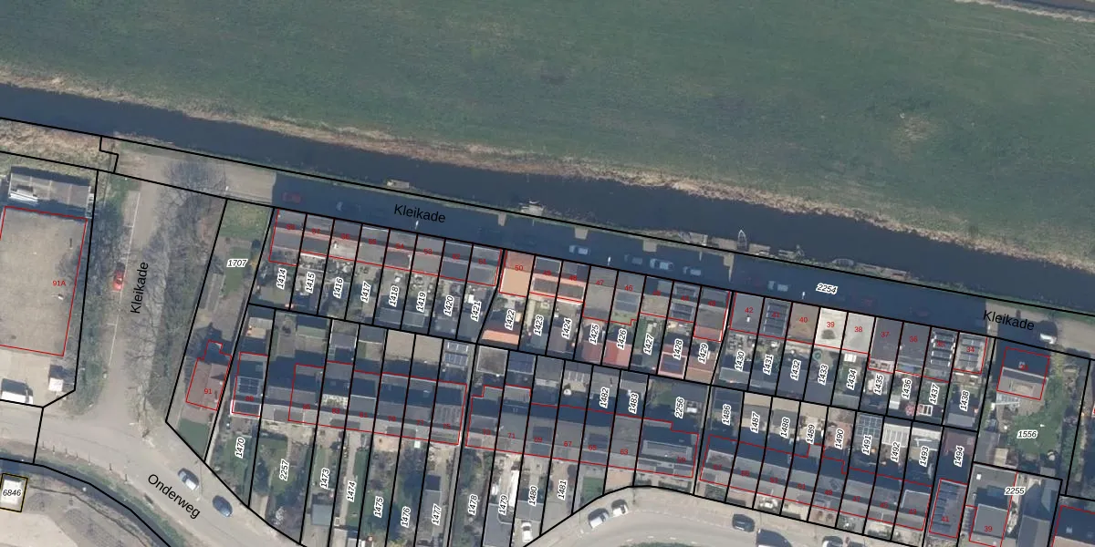 Het perceel waarop Kleikade 49 staat heeft een oppervlakte van 94 m². Dit is een klein perceel. De perceeloppervlakte wordt geregistreerd door het Kadaster. Gedetailleerde informatie over de maten van dit perceel kunt u vinden in het rapport Kadastrale kaart met maatvoering van Kleikade 49.