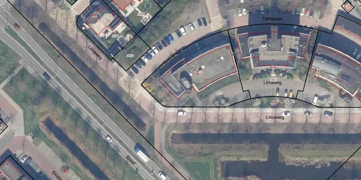 Limaweg 15 is gelegen op kadastraal perceel WDV01C4173. Deze kadastrale aanduiding is uniek en wordt gebruikt door het Kadaster om eigendomsrechten en andere zakelijke rechten vast te leggen. Het perceel maakt onderdeel uit van de kadastrale gemeente Waddinxveen.