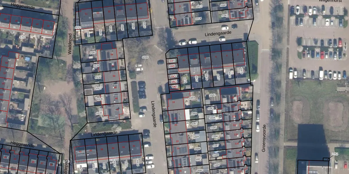 Lindengaarde 14-E is gelegen op kadastraal perceel WDV01B6970. Deze kadastrale aanduiding is uniek en wordt gebruikt door het Kadaster om eigendomsrechten en andere zakelijke rechten vast te leggen. Het perceel maakt onderdeel uit van de kadastrale gemeente Waddinxveen.