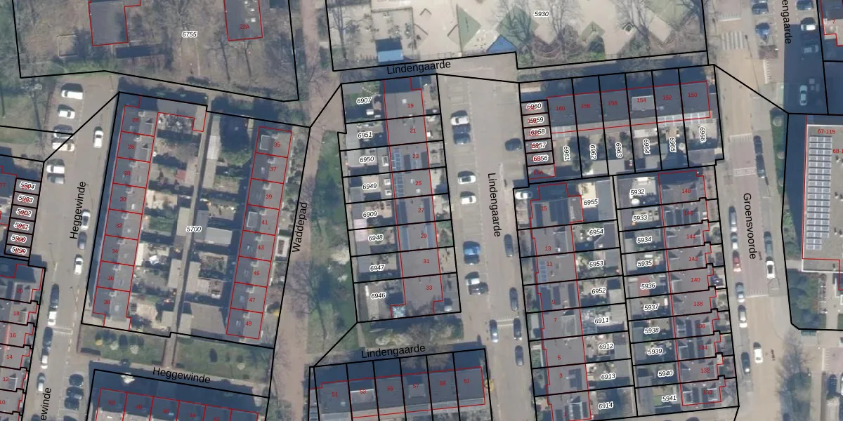 Gebruik de zoekbalk of klik op een perceel voor informatie over de adressen binnen dit perceel.