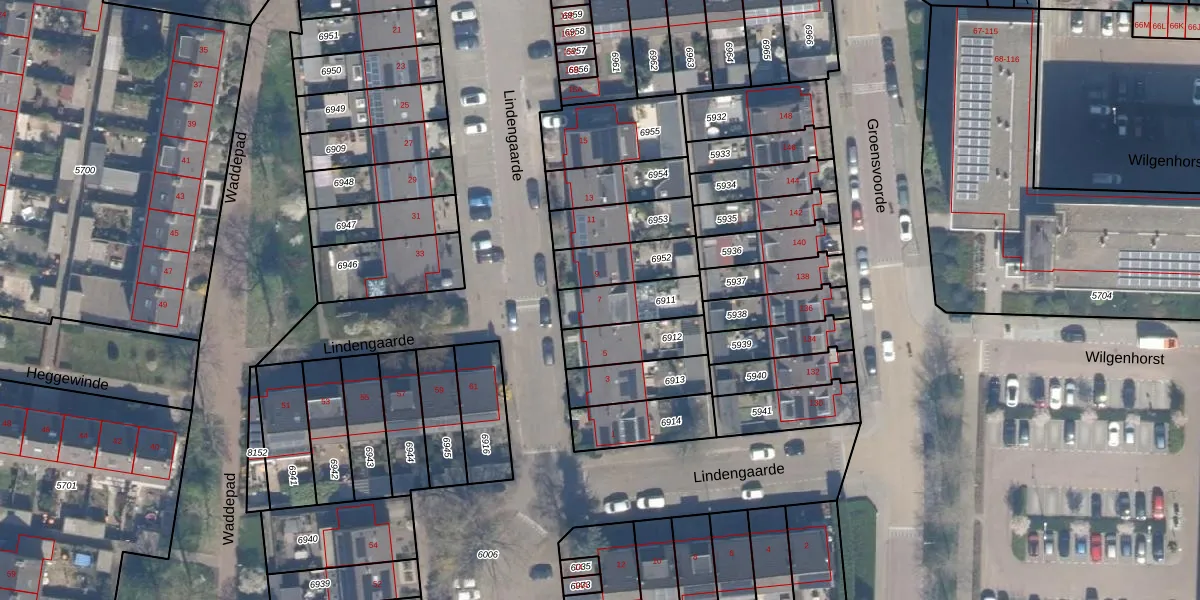 Lindengaarde 7 is gelegen op kadastraal perceel WDV01B6911. Deze kadastrale aanduiding is uniek en wordt gebruikt door het Kadaster om eigendomsrechten en andere zakelijke rechten vast te leggen. Het perceel maakt onderdeel uit van de kadastrale gemeente Waddinxveen.