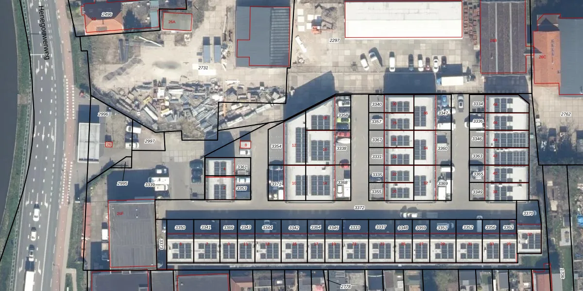 Het adres ligt op het perceel WDV01-G-3354, dat zich in de kadastrale gemeente Waddinxveen bevindt. Het perceel is kleiner dan gemiddeld in Waddinxveen. Het perceel is 199 m² groot, terwijl het gemiddelde ligt op 2160,72 m². Het grootste perceel in de kadastrale gemeente is 49,8 ha. Het kleinste perceel heeft een oppervlakte van 0 m². Er zijn geen andere adressen aanwezig op het perceel. De laatste wijziging in het de Basisregistratie Kadaster (BRK) was op 29-09-2022.