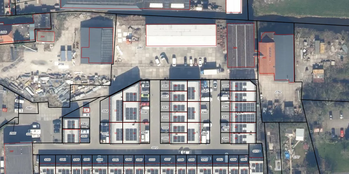 Het perceel waarop Maalderij 30 staat heeft een oppervlakte van 97 m². Dit is een klein perceel. De perceeloppervlakte wordt geregistreerd door het Kadaster. Gedetailleerde informatie over de maten van dit perceel kunt u vinden in het rapport Kadastrale kaart met maatvoering van Maalderij 30.