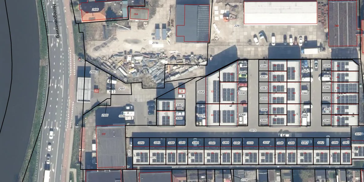 Gebruik de zoekbalk of klik op een perceel voor informatie over de adressen binnen dit perceel.