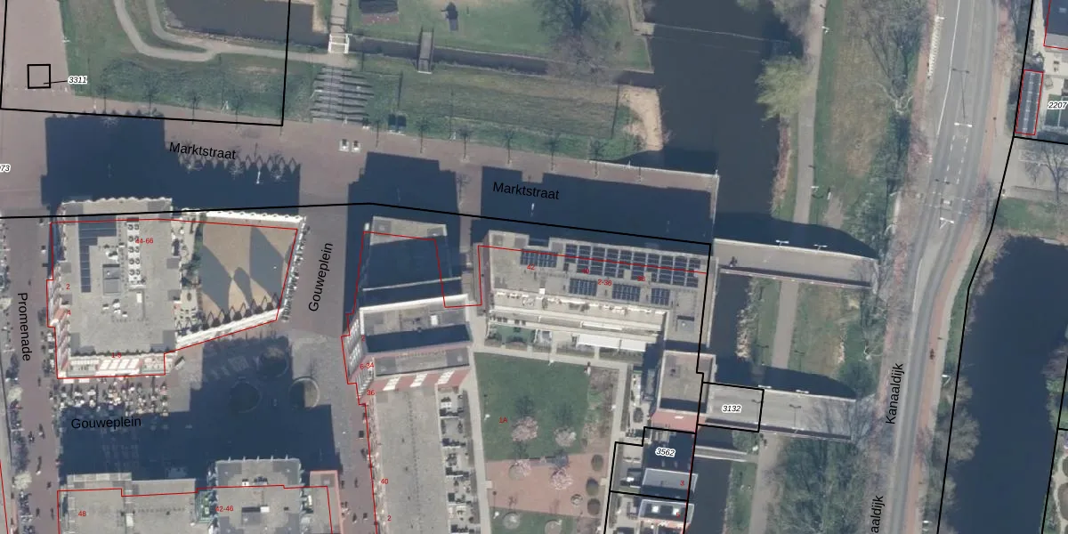Het perceel waarop Marktstraat 42 staat heeft een oppervlakte van 3,1 ha. Dit is een zeer groot perceel. De perceeloppervlakte wordt geregistreerd door het Kadaster. Gedetailleerde informatie over de maten van dit perceel kunt u vinden in het rapport Kadastrale kaart met maatvoering van Marktstraat 42.