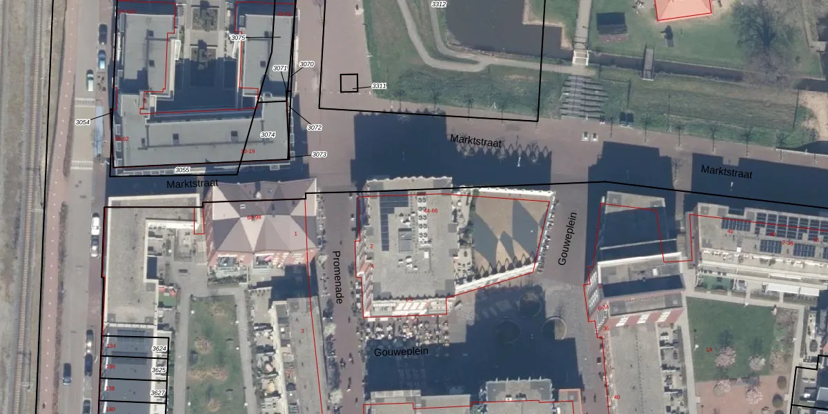 Het perceel waarop Marktstraat 48 staat heeft een oppervlakte van 3,1 ha. Dit is een zeer groot perceel. De perceeloppervlakte wordt geregistreerd door het Kadaster. Gedetailleerde informatie over de maten van dit perceel kunt u vinden in het rapport Kadastrale kaart met maatvoering van Marktstraat 48.