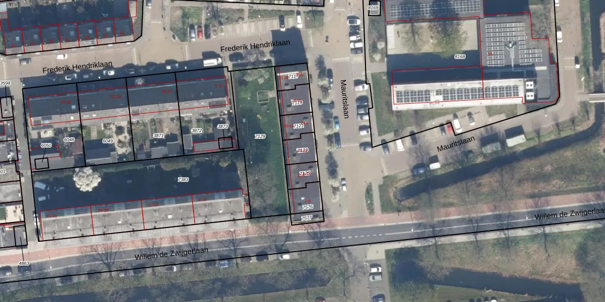 Mauritslaan 14 is gelegen op kadastraal perceel WDV01B7123. Deze kadastrale aanduiding is uniek en wordt gebruikt door het Kadaster om eigendomsrechten en andere zakelijke rechten vast te leggen. Het perceel maakt onderdeel uit van de kadastrale gemeente Waddinxveen.