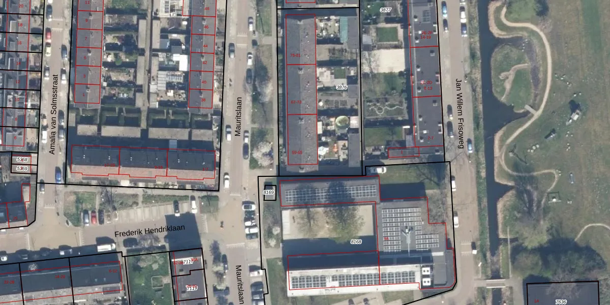 Mauritslaan 61 is gelegen op kadastraal perceel WDV01B3876. Deze kadastrale aanduiding is uniek en wordt gebruikt door het Kadaster om eigendomsrechten en andere zakelijke rechten vast te leggen. Het perceel maakt onderdeel uit van de kadastrale gemeente Waddinxveen.
