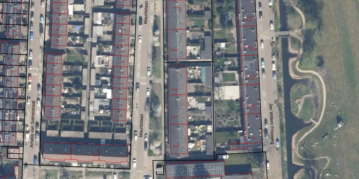 Mauritslaan 77 is gelegen op kadastraal perceel WDV01B3876. Deze kadastrale aanduiding is uniek en wordt gebruikt door het Kadaster om eigendomsrechten en andere zakelijke rechten vast te leggen. Het perceel maakt onderdeel uit van de kadastrale gemeente Waddinxveen.