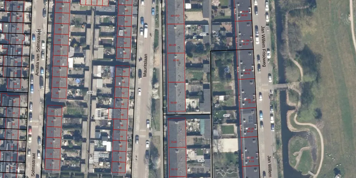 Het perceel waarop Mauritslaan 87 staat heeft een oppervlakte van 2617 m². Dit is een zeer groot perceel. De perceeloppervlakte wordt geregistreerd door het Kadaster. Gedetailleerde informatie over de maten van dit perceel kunt u vinden in het rapport Kadastrale kaart met maatvoering van Mauritslaan 87.
