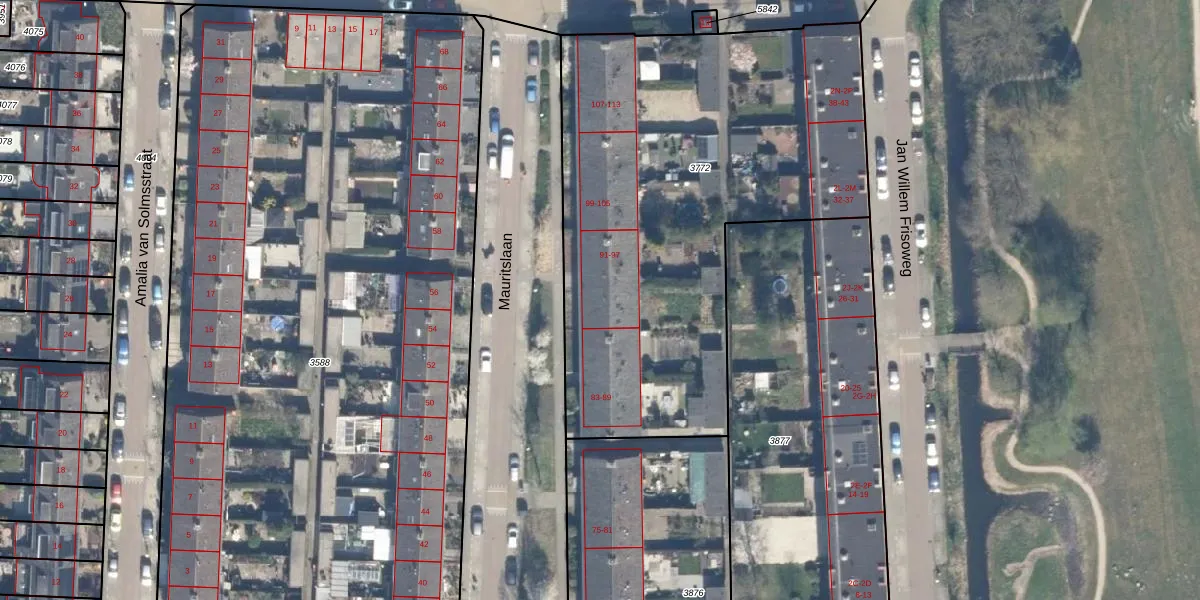 Mauritslaan 91 is gelegen op kadastraal perceel WDV01B3772. Deze kadastrale aanduiding is uniek en wordt gebruikt door het Kadaster om eigendomsrechten en andere zakelijke rechten vast te leggen. Het perceel maakt onderdeel uit van de kadastrale gemeente Waddinxveen.