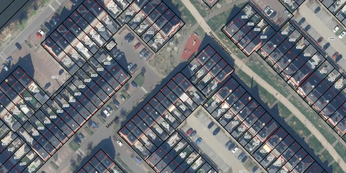 Het perceel waarop Meerval 23 staat heeft een oppervlakte van 106 m². Dit is een middelgroot perceel. De perceeloppervlakte wordt geregistreerd door het Kadaster. Gedetailleerde informatie over de maten van dit perceel kunt u vinden in het rapport Kadastrale kaart met maatvoering van Meerval 23.