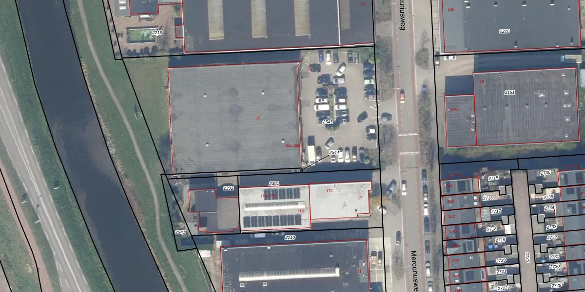 Mercuriusweg 15-A is gelegen op kadastraal perceel WDV01F2545. Deze kadastrale aanduiding is uniek en wordt gebruikt door het Kadaster om eigendomsrechten en andere zakelijke rechten vast te leggen. Het perceel maakt onderdeel uit van de kadastrale gemeente Waddinxveen.