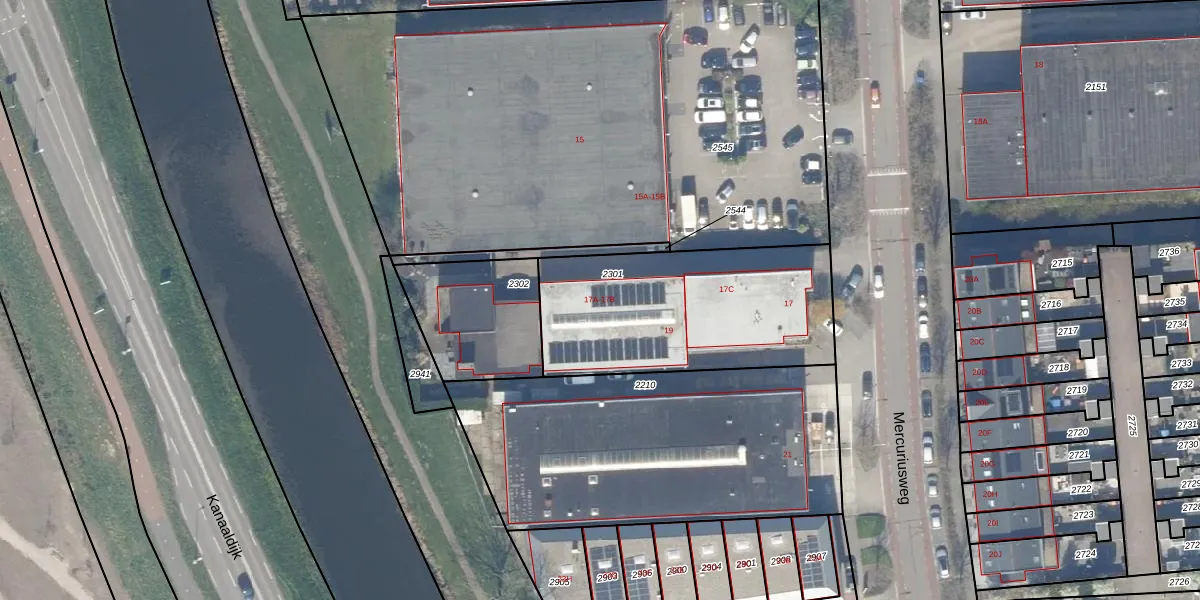 Mercuriusweg 17-A is gelegen op kadastraal perceel WDV01F2301. Deze kadastrale aanduiding is uniek en wordt gebruikt door het Kadaster om eigendomsrechten en andere zakelijke rechten vast te leggen. Het perceel maakt onderdeel uit van de kadastrale gemeente Waddinxveen.