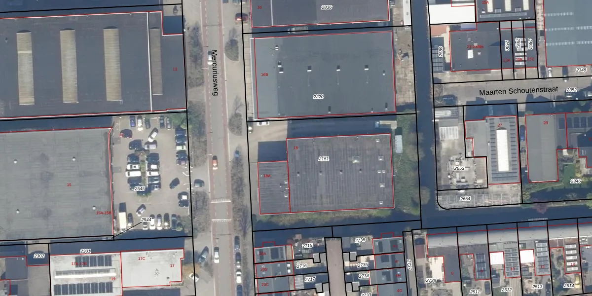 Het perceel waarop Mercuriusweg 18 staat heeft een oppervlakte van 2075 m². Dit is een zeer groot perceel. De perceeloppervlakte wordt geregistreerd door het Kadaster. Gedetailleerde informatie over de maten van dit perceel kunt u vinden in het rapport Kadastrale kaart met maatvoering van Mercuriusweg 18.