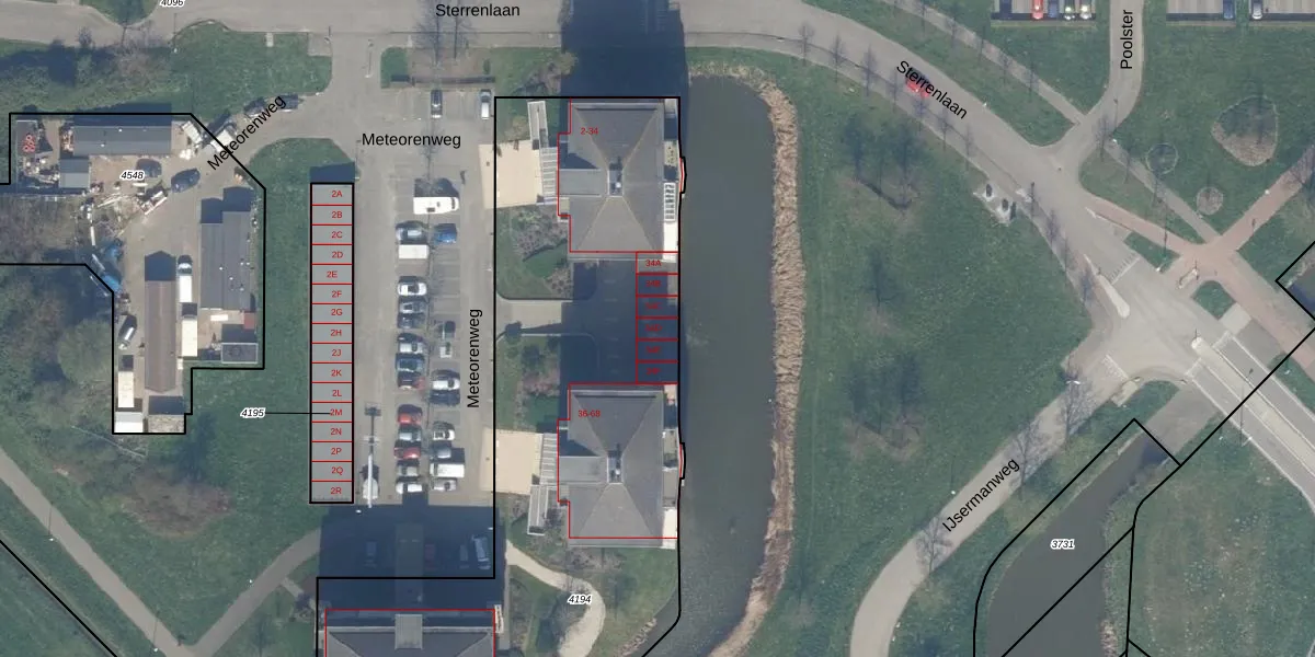 Meteorenweg 34-D is gelegen op kadastraal perceel WDV01C4194. Deze kadastrale aanduiding is uniek en wordt gebruikt door het Kadaster om eigendomsrechten en andere zakelijke rechten vast te leggen. Het perceel maakt onderdeel uit van de kadastrale gemeente Waddinxveen.