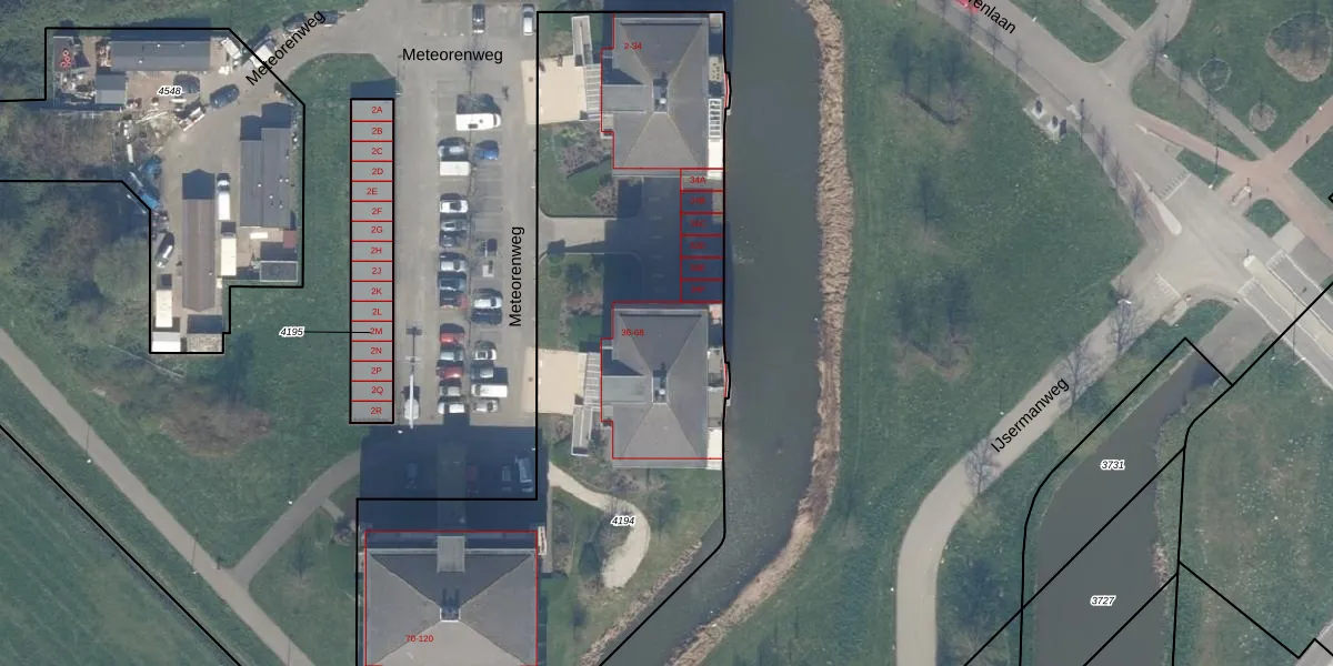 Het perceel waarop Meteorenweg 48 staat heeft een oppervlakte van 3395 m². Dit is een zeer groot perceel. De perceeloppervlakte wordt geregistreerd door het Kadaster. Gedetailleerde informatie over de maten van dit perceel kunt u vinden in het rapport Kadastrale kaart met maatvoering van Meteorenweg 48.
