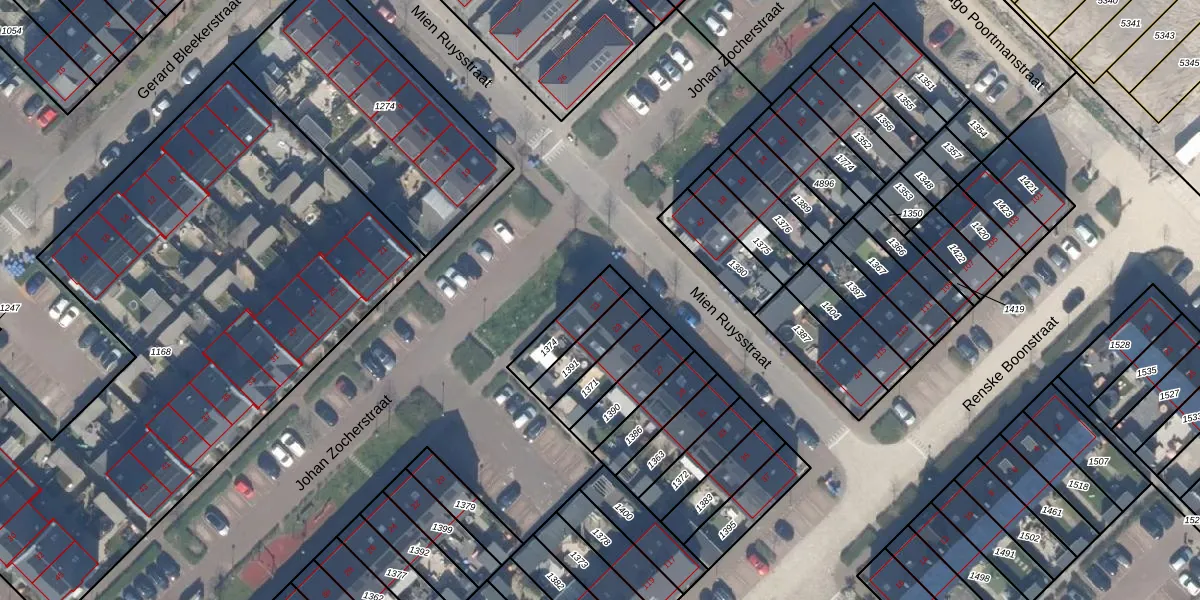 Mien Ruysstraat 21 is gelegen op kadastraal perceel WDV01E1374. Deze kadastrale aanduiding is uniek en wordt gebruikt door het Kadaster om eigendomsrechten en andere zakelijke rechten vast te leggen. Het perceel maakt onderdeel uit van de kadastrale gemeente Waddinxveen.