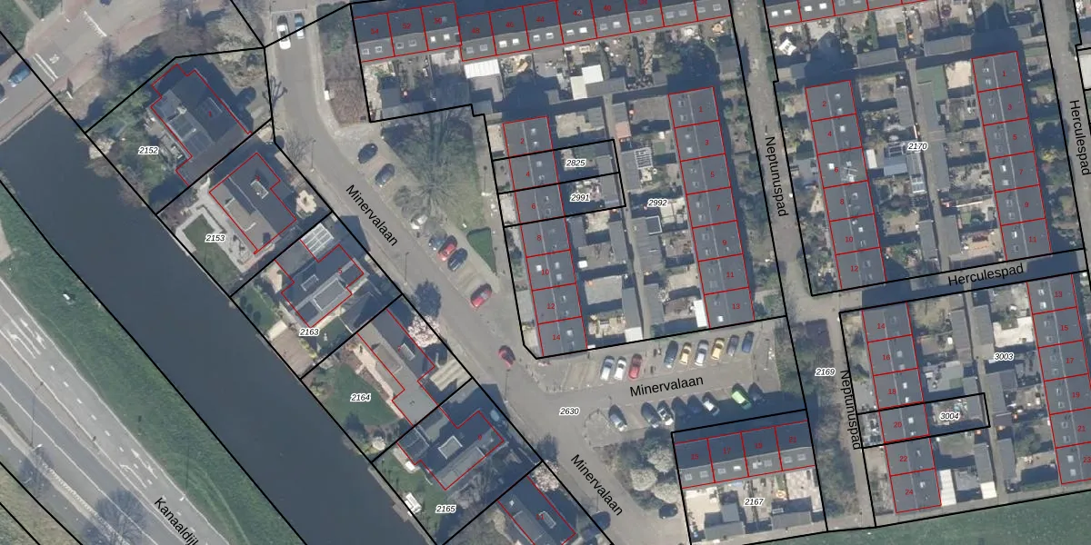Het perceel waarop Minervalaan 10 staat heeft een oppervlakte van 3425 m². Dit is een zeer groot perceel. De perceeloppervlakte wordt geregistreerd door het Kadaster. Gedetailleerde informatie over de maten van dit perceel kunt u vinden in het rapport Kadastrale kaart met maatvoering van Minervalaan 10.