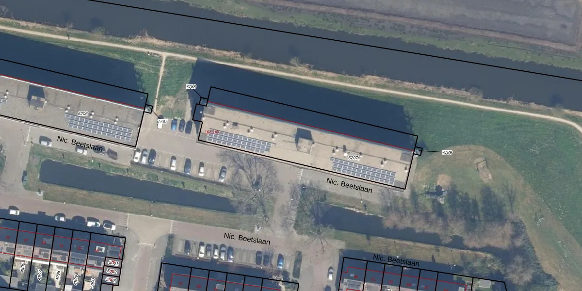 Nic. Beetslaan 184 is gelegen op kadastraal perceel WDV01B6207. Deze kadastrale aanduiding is uniek en wordt gebruikt door het Kadaster om eigendomsrechten en andere zakelijke rechten vast te leggen. Het perceel maakt onderdeel uit van de kadastrale gemeente Waddinxveen.