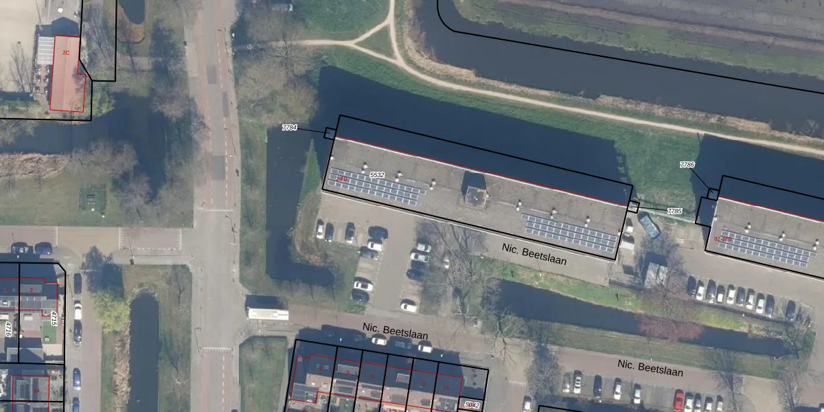 Het perceel waarop Nic. Beetslaan 2-E staat heeft een oppervlakte van 1362 m². Dit is een zeer groot perceel. De perceeloppervlakte wordt geregistreerd door het Kadaster. Gedetailleerde informatie over de maten van dit perceel kunt u vinden in het rapport Kadastrale kaart met maatvoering van Nic. Beetslaan 2-E.