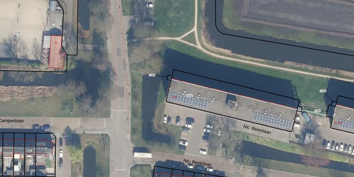 Nic. Beetslaan 50 is gelegen op kadastraal perceel WDV01B5532. Deze kadastrale aanduiding is uniek en wordt gebruikt door het Kadaster om eigendomsrechten en andere zakelijke rechten vast te leggen. Het perceel maakt onderdeel uit van de kadastrale gemeente Waddinxveen.