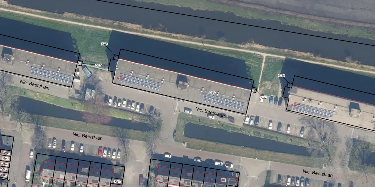 Nic. Beetslaan 90 is gelegen op kadastraal perceel WDV01B6206. Deze kadastrale aanduiding is uniek en wordt gebruikt door het Kadaster om eigendomsrechten en andere zakelijke rechten vast te leggen. Het perceel maakt onderdeel uit van de kadastrale gemeente Waddinxveen.