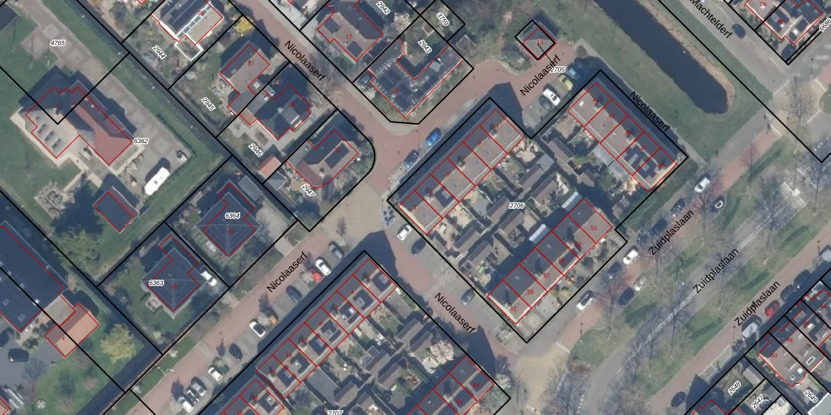 Nicolaaserf 1 is gelegen op kadastraal perceel WDV01C2706. Deze kadastrale aanduiding is uniek en wordt gebruikt door het Kadaster om eigendomsrechten en andere zakelijke rechten vast te leggen. Het perceel maakt onderdeel uit van de kadastrale gemeente Waddinxveen.