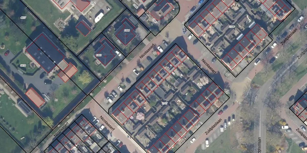 Nicolaaserf 10 is gelegen op kadastraal perceel WDV01C2707. Deze kadastrale aanduiding is uniek en wordt gebruikt door het Kadaster om eigendomsrechten en andere zakelijke rechten vast te leggen. Het perceel maakt onderdeel uit van de kadastrale gemeente Waddinxveen.