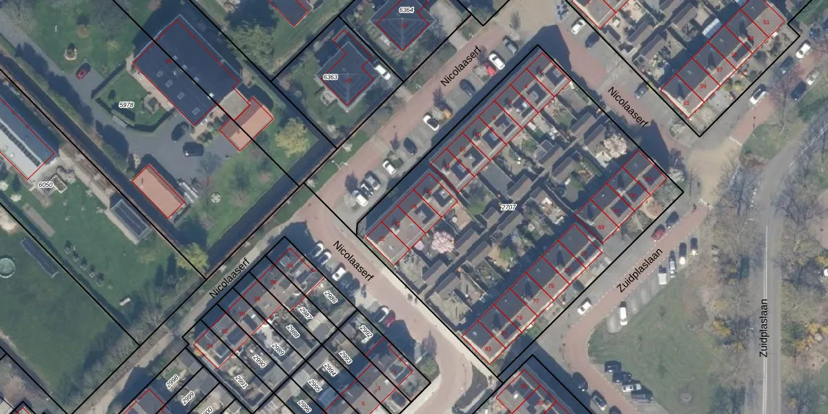 Nicolaaserf 18 is gelegen op kadastraal perceel WDV01C2707. Deze kadastrale aanduiding is uniek en wordt gebruikt door het Kadaster om eigendomsrechten en andere zakelijke rechten vast te leggen. Het perceel maakt onderdeel uit van de kadastrale gemeente Waddinxveen.