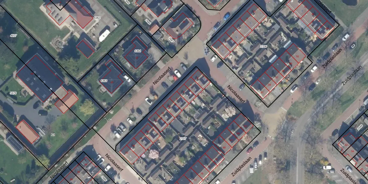 Nicolaaserf 6 is gelegen op kadastraal perceel WDV01C2707. Deze kadastrale aanduiding is uniek en wordt gebruikt door het Kadaster om eigendomsrechten en andere zakelijke rechten vast te leggen. Het perceel maakt onderdeel uit van de kadastrale gemeente Waddinxveen.