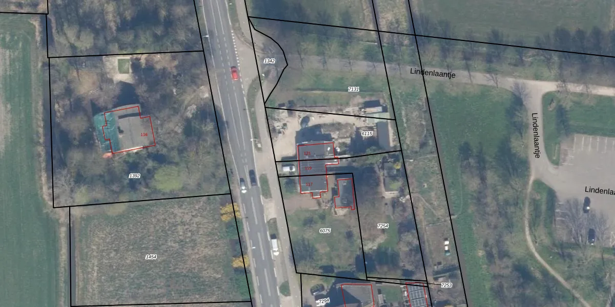 Noordeinde 121 is gelegen op kadastraal perceel WDV01B6115. Deze kadastrale aanduiding is uniek en wordt gebruikt door het Kadaster om eigendomsrechten en andere zakelijke rechten vast te leggen. Het perceel maakt onderdeel uit van de kadastrale gemeente Waddinxveen.