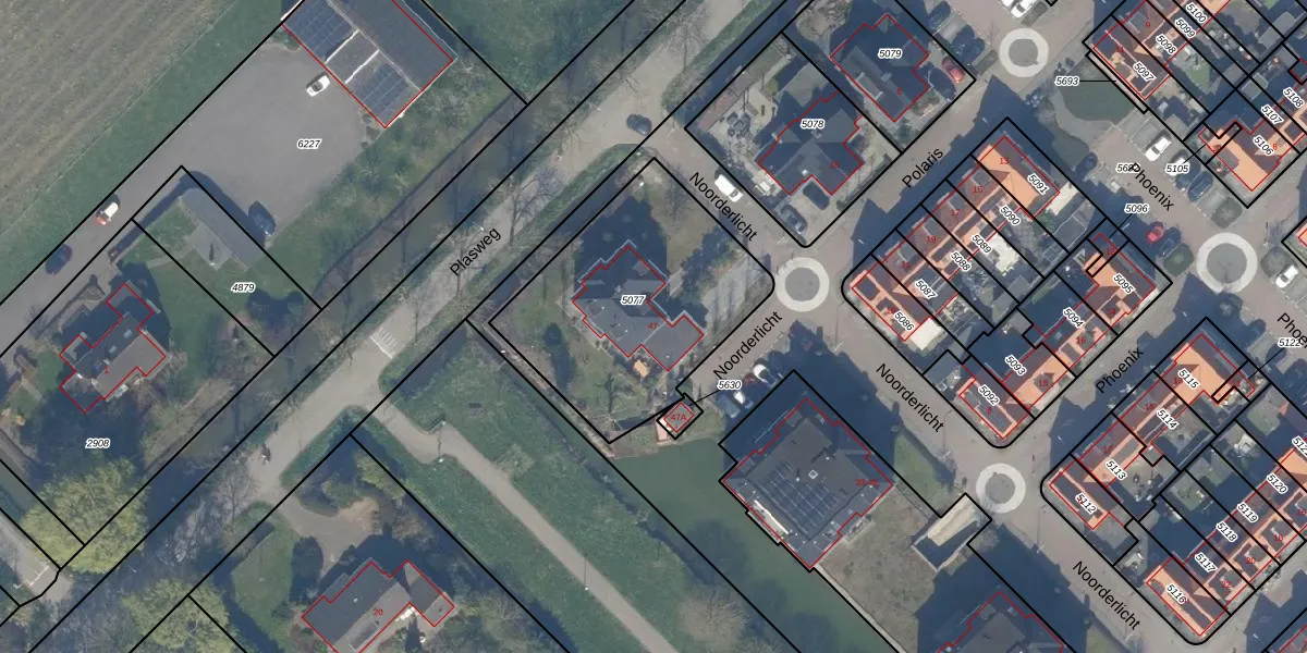 Het perceel waarop Noorderlicht 47 staat heeft een oppervlakte van 980 m². Dit is een groot perceel. De perceeloppervlakte wordt geregistreerd door het Kadaster. Gedetailleerde informatie over de maten van dit perceel kunt u vinden in het rapport Kadastrale kaart met maatvoering van Noorderlicht 47.