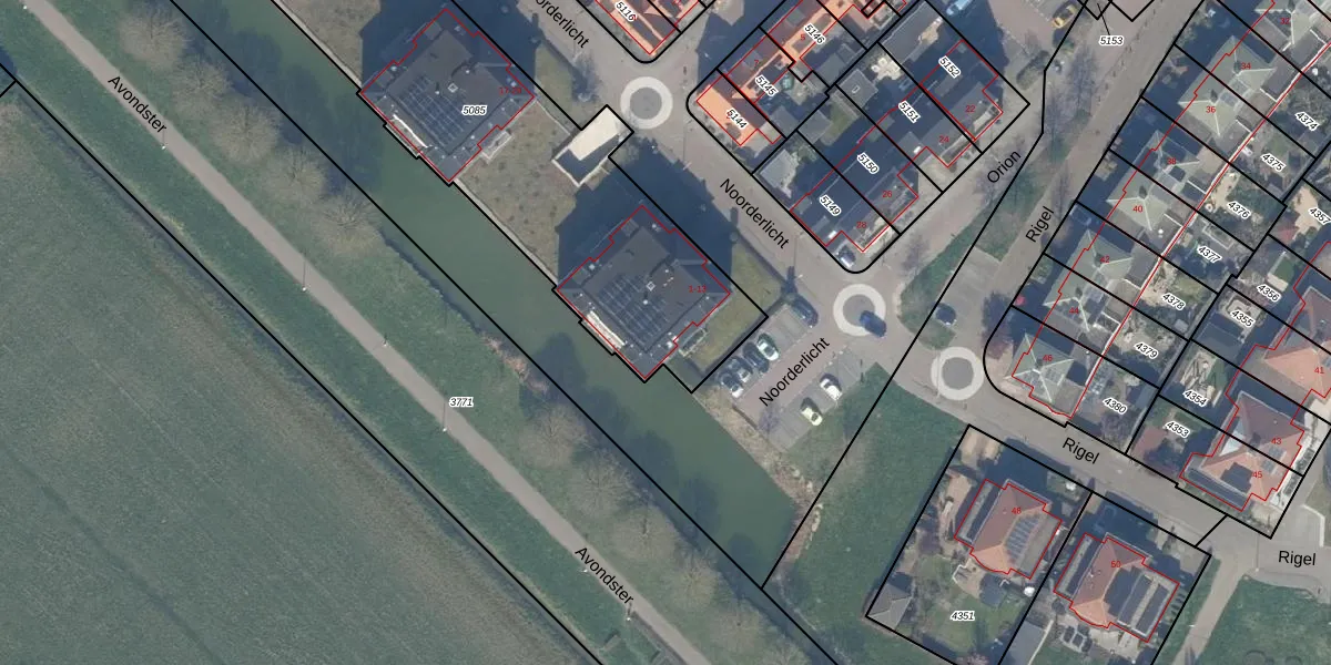 Het perceel waarop Noorderlicht 9 staat heeft een oppervlakte van 2269 m². Dit is een zeer groot perceel. De perceeloppervlakte wordt geregistreerd door het Kadaster. Gedetailleerde informatie over de maten van dit perceel kunt u vinden in het rapport Kadastrale kaart met maatvoering van Noorderlicht 9.