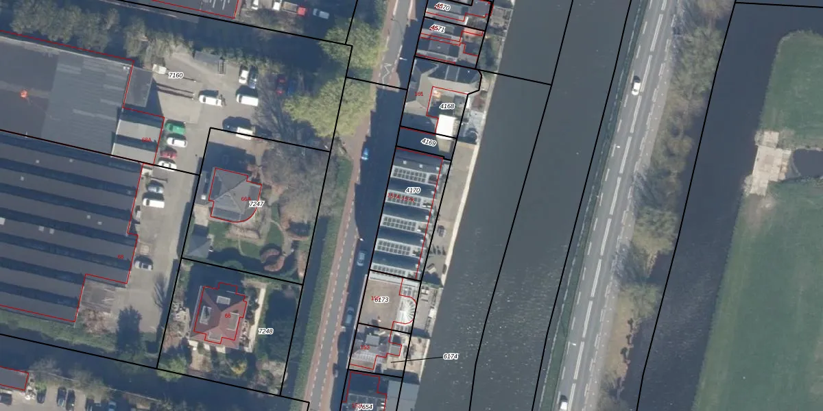 Het adres ligt op het perceel WDV01-B-4170, dat zich in de kadastrale gemeente Waddinxveen bevindt. Het perceel is kleiner dan gemiddeld in Waddinxveen. Het perceel is 420 m² groot, terwijl het gemiddelde ligt op 2158,81 m². Het kleinste perceel in de kadastrale gemeente is 0 m² groot. De grootste perceeloppervlakte is 49,8 ha. Er zijn 9 adressen aanwezig op het perceel. De huidige grenzen van het perceel zijn digitaal in de Basisregistratie Kadaster (BRK) geregistreerd op 26-03-2003.