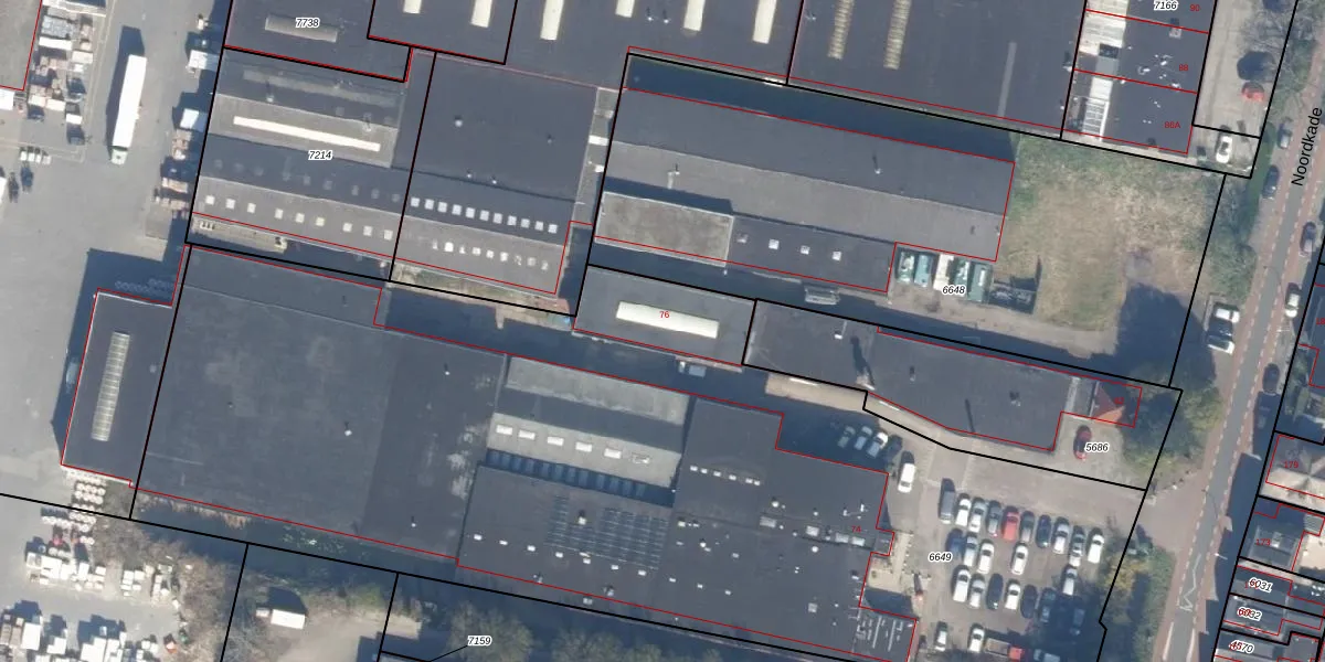 Het perceel waarop Noordkade 76 staat heeft een oppervlakte van 6165 m². Dit is een zeer groot perceel. De perceeloppervlakte wordt geregistreerd door het Kadaster. Gedetailleerde informatie over de maten van dit perceel kunt u vinden in het rapport Kadastrale kaart met maatvoering van Noordkade 76.