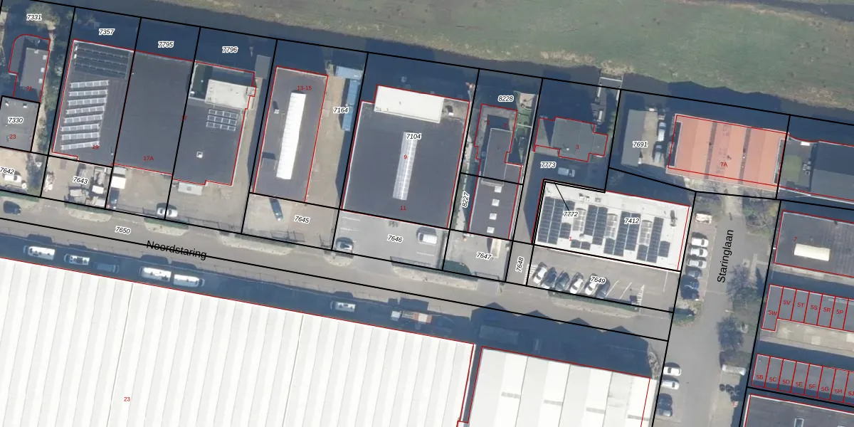 Noordstaring 11-A is gelegen op kadastraal perceel WDV01B7104. Deze kadastrale aanduiding is uniek en wordt gebruikt door het Kadaster om eigendomsrechten en andere zakelijke rechten vast te leggen. Het perceel maakt onderdeel uit van de kadastrale gemeente Waddinxveen.