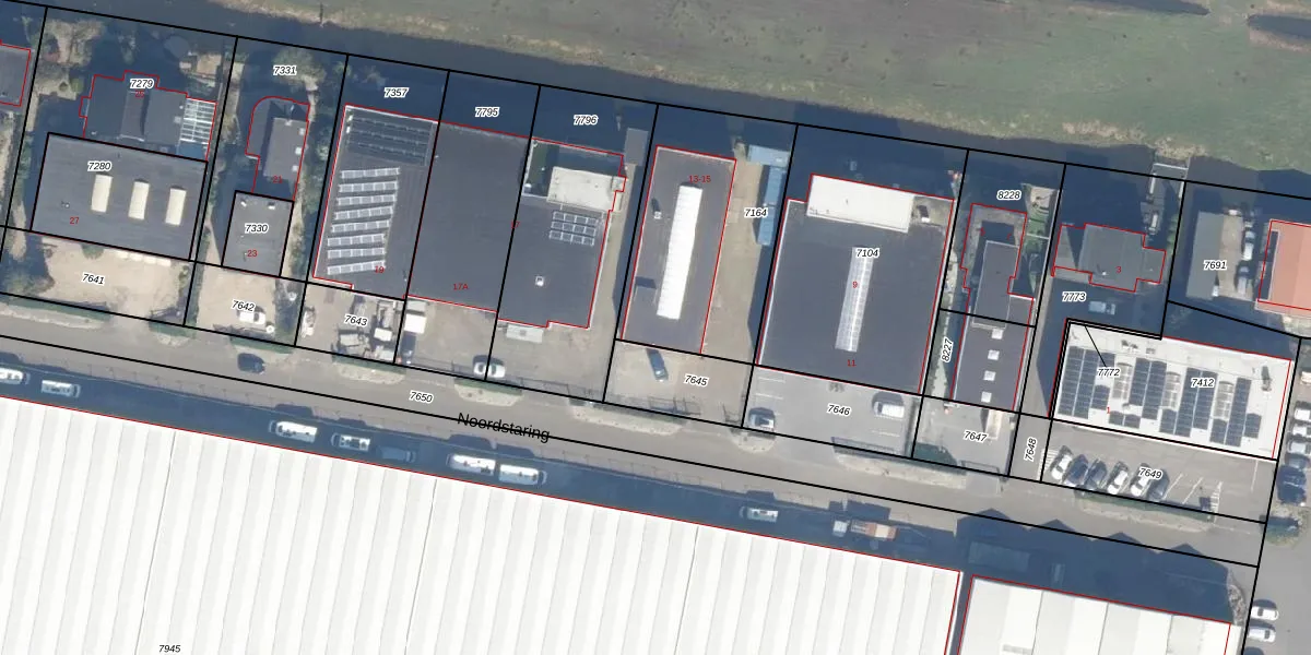 Noordstaring 15 is gelegen op kadastraal perceel WDV01B7164. Deze kadastrale aanduiding is uniek en wordt gebruikt door het Kadaster om eigendomsrechten en andere zakelijke rechten vast te leggen. Het perceel maakt onderdeel uit van de kadastrale gemeente Waddinxveen.