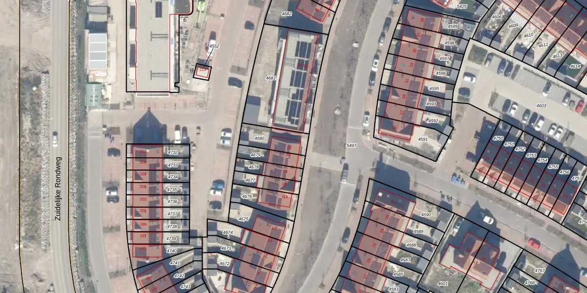 Het perceel waarop het adres ligt is WDV01-E-4680. De afkorting 'WDV01' staat voor kadastrale gemeente Waddinxveen. Het perceel is 174 m² groot. Dat is kleiner dan de gemiddelde perceeloppervlakte in Waddinxveen, dat op 2158,81 m² ligt. Het grootste perceel in de kadastrale gemeente is 49,8 ha. Het kleinste perceel heeft een oppervlakte van 0 m². Op het perceel bevinden zich geen andere adressen. De laatste wijziging in het de Basisregistratie Kadaster (BRK) was op 24-10-2025.