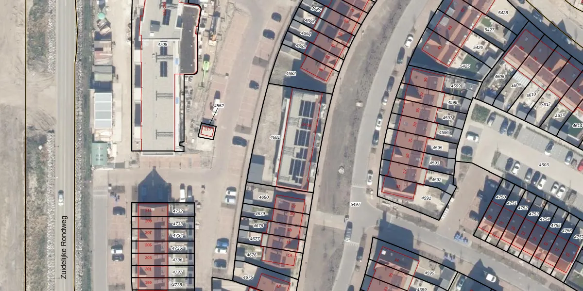 Het perceel waarop het adres ligt is WDV01-E-4681. De afkorting 'WDV01' staat voor kadastrale gemeente Waddinxveen. Het perceel is 784 m² groot. Dat is kleiner dan de gemiddelde perceeloppervlakte in Waddinxveen, dat op 2158,81 m² ligt. Het kleinste perceel in de kadastrale gemeente is 0 m² groot. De grootste perceeloppervlakte is 49,8 ha. Er zijn 18 adressen aanwezig op het perceel. De laatste wijziging in het de Basisregistratie Kadaster (BRK) was op 24-10-2025.