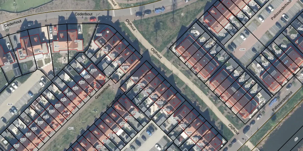 Gebruik de zoekbalk of klik op een perceel voor informatie over de adressen binnen dit perceel.