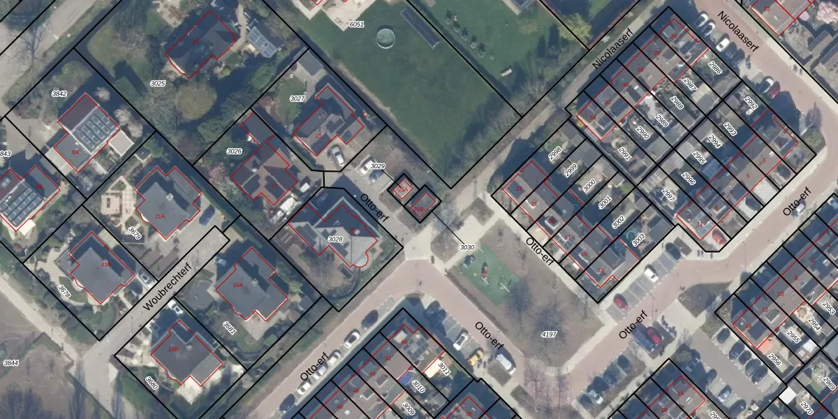 Otto-erf 25-B is gelegen op kadastraal perceel WDV01C3030. Deze kadastrale aanduiding is uniek en wordt gebruikt door het Kadaster om eigendomsrechten en andere zakelijke rechten vast te leggen. Het perceel maakt onderdeel uit van de kadastrale gemeente Waddinxveen.