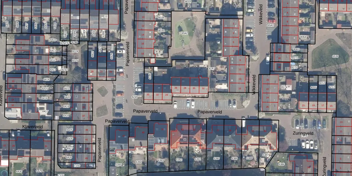 Papaverveld 26 is gelegen op kadastraal perceel WDV01B8147. Deze kadastrale aanduiding is uniek en wordt gebruikt door het Kadaster om eigendomsrechten en andere zakelijke rechten vast te leggen. Het perceel maakt onderdeel uit van de kadastrale gemeente Waddinxveen.