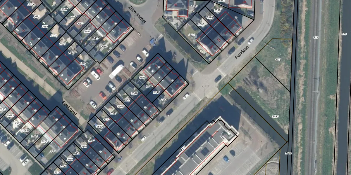 Parklaan 125 is gelegen op kadastraal perceel WDV01E2663. Deze kadastrale aanduiding is uniek en wordt gebruikt door het Kadaster om eigendomsrechten en andere zakelijke rechten vast te leggen. Het perceel maakt onderdeel uit van de kadastrale gemeente Waddinxveen.