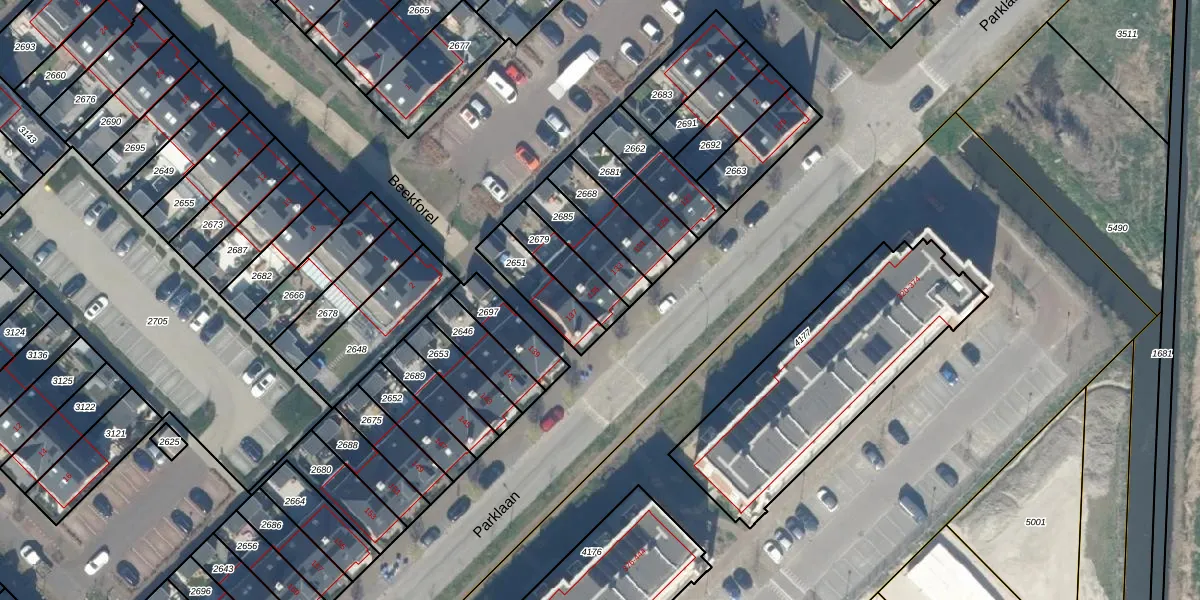Parklaan 135 is gelegen op kadastraal perceel WDV01E2679. Deze kadastrale aanduiding is uniek en wordt gebruikt door het Kadaster om eigendomsrechten en andere zakelijke rechten vast te leggen. Het perceel maakt onderdeel uit van de kadastrale gemeente Waddinxveen.