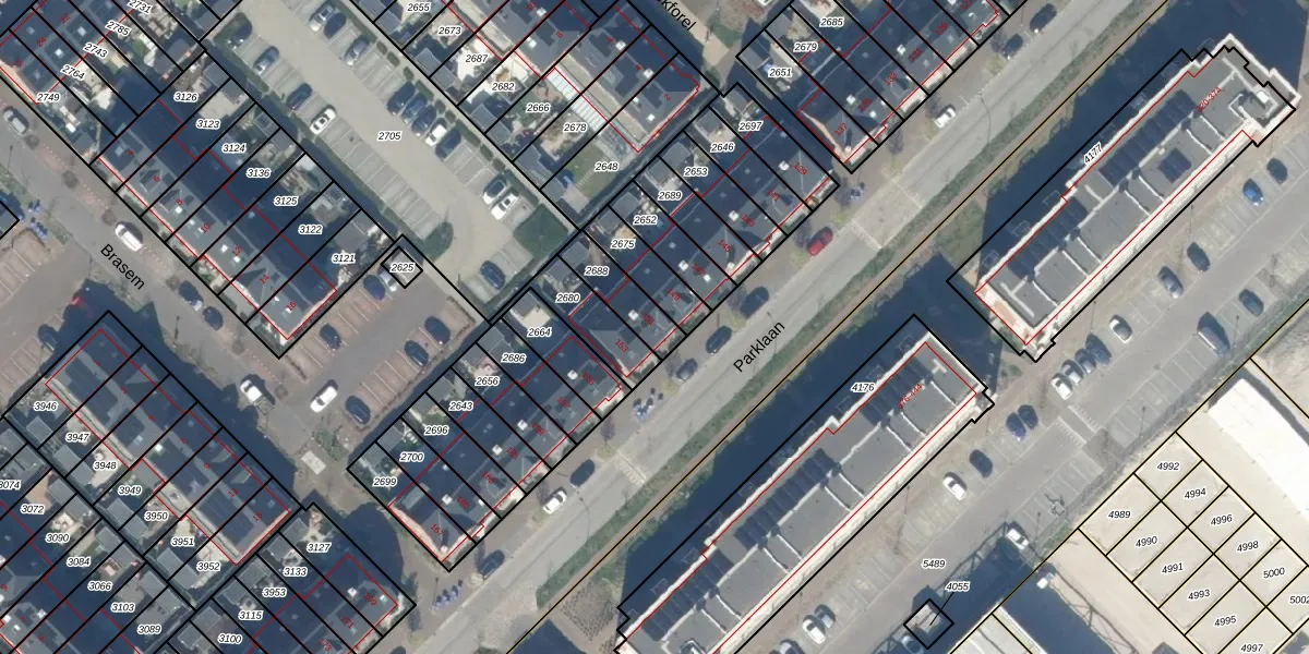 Parklaan 151 is gelegen op kadastraal perceel WDV01E2688. Deze kadastrale aanduiding is uniek en wordt gebruikt door het Kadaster om eigendomsrechten en andere zakelijke rechten vast te leggen. Het perceel maakt onderdeel uit van de kadastrale gemeente Waddinxveen.