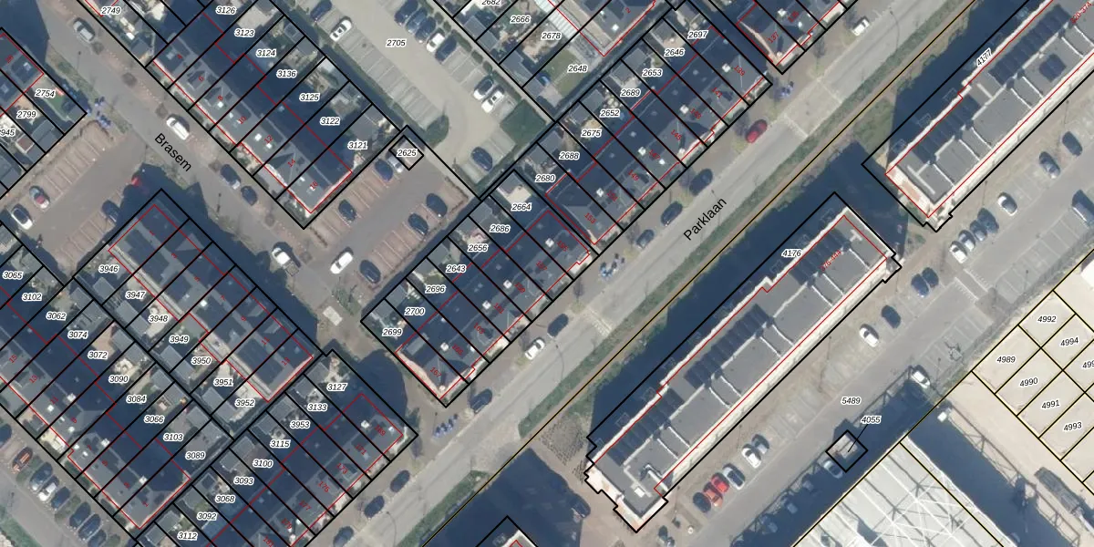 Parklaan 157 is gelegen op kadastraal perceel WDV01E2686. Deze kadastrale aanduiding is uniek en wordt gebruikt door het Kadaster om eigendomsrechten en andere zakelijke rechten vast te leggen. Het perceel maakt onderdeel uit van de kadastrale gemeente Waddinxveen.