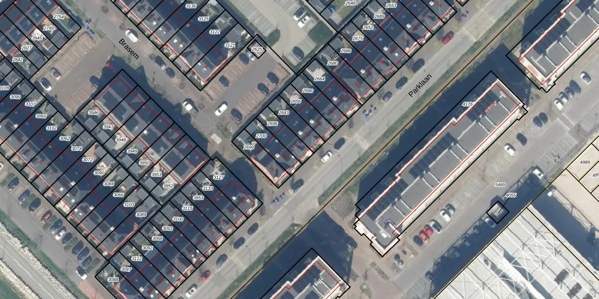 Parklaan 163 is gelegen op kadastraal perceel WDV01E2696. Deze kadastrale aanduiding is uniek en wordt gebruikt door het Kadaster om eigendomsrechten en andere zakelijke rechten vast te leggen. Het perceel maakt onderdeel uit van de kadastrale gemeente Waddinxveen.