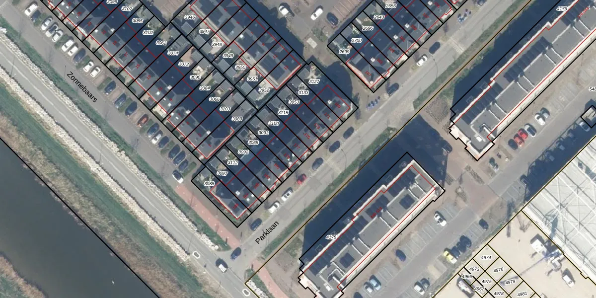 Gebruik de zoekbalk of klik op een perceel voor informatie over de adressen binnen dit perceel.