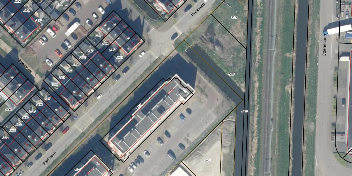 Parklaan 360 is gelegen op kadastraal perceel WDV01E4177. Deze kadastrale aanduiding is uniek en wordt gebruikt door het Kadaster om eigendomsrechten en andere zakelijke rechten vast te leggen. Het perceel maakt onderdeel uit van de kadastrale gemeente Waddinxveen.